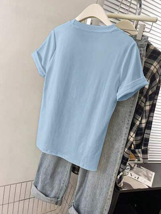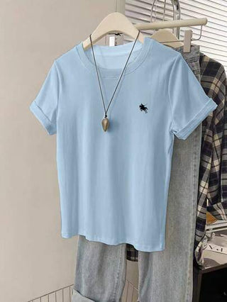 INAWLY تي شيرت كاجوال قصير الأكمام بطباعة أشبه بشارات فارس، أنيق ومريح للسيدات