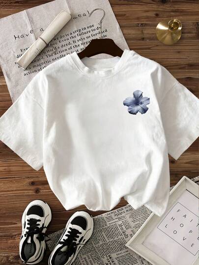 INAWLY تي شيرت كاجوال للنساء بطبعة زهور وياقة دائرية وأكمام قصيرة ، صيفي