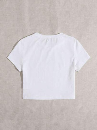 INAWLY تي شيرت كاجوال نسائي قصير الأكمام مزخرف بطباعة شعار الفتاة الرائع مع تفاصيل عقدة الفيونكة، رقبة دائرية، إطار نسائي