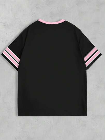 INAWLY تي شيرت نسائي بطراز رياضي أكاديمي مرصع بالنقاط والأحرف الرقمية المنتشرة بأسلوب كاجوال شارع الحس الرجعي
