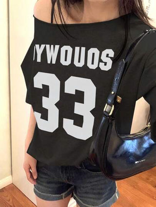 INAWLY تي شيرت نسائي كاجوال فضفاض غير متماثل الياقة بطباعة رقمية أكمام قصيرة، تيشيرتات طباعية للنساء