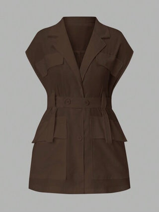 INAWLY جاكيت كاجوال ذات لون داكن مصممة بحزام ضيق للخصر