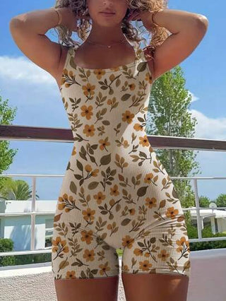 INAWLY جمبسوت رياضية ضيقة ملائمة للعطلات مع طبعة زهرية كاملة بدون ظهر للنساء للأوقات الحرة والخارجية