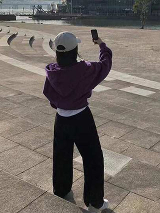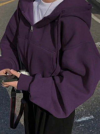 INAWLY سترة بغطاء رأس رياضية فضفاضة للنساء بسحاب وسير تعديل، لون أحادي، ربيع وخريف، أكمام طويلة