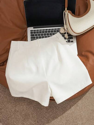 INAWLY شورت أبيض فضفاض عالي الخصر كاجوال للنساء، شورت بساق واسعة مخفف