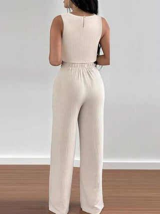 INAWLY طقم نسائي كاجوال مكون من 2 قطع ، فوتي برقبة أنيقة وسراويل ذات حمالات متقاطعة وساق مستقيمة، للعطلات الأنيقة