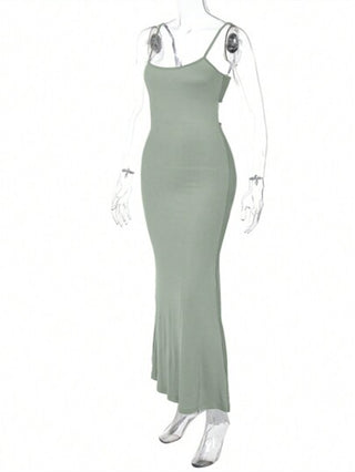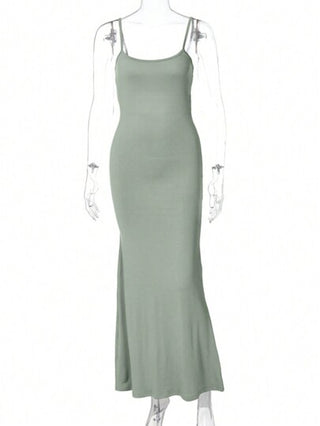 INAWLY فستان مثير للنساء بلون أحادي خلفي مضبوط ، صيفي