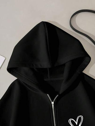 INAWLY قطعة واحدة هودي عادي للنساء مع سحاب أمامي وطباعة قلب ، بتصميم بسيط