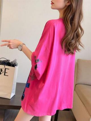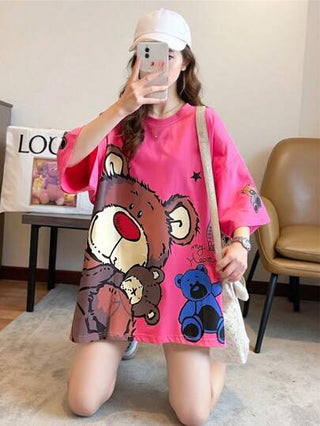 INAWLY قميص كاجوال للنساء بطباعة دب كرتوني لطيف - خليط من البوليستر المريح، أكمام قصيرة، رقبة دائرية - مثالي للربيع والصيف
