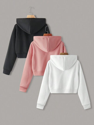 INAWLY كنزة قصيرة مقصرة ذات لون واحد مزودة بسحاب وسُحاب للخصر، أكمام طويلة