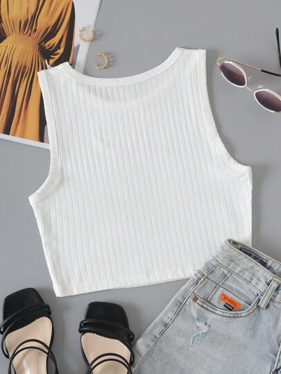 INAWLY لباس علوي تانك موحدة اللون محبوك مضلع