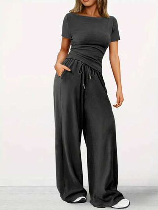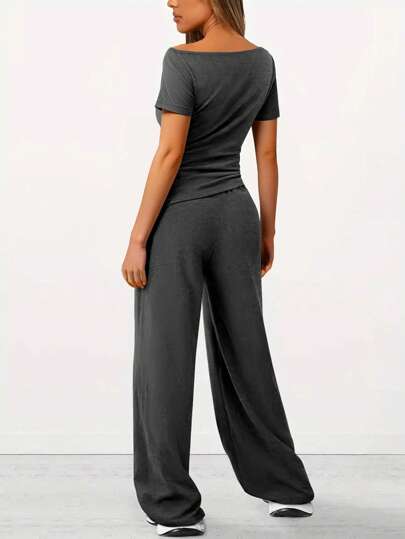 INAWLY مجموعة نسائية قطعتين ملابس كاجوال لون أحادي ملابس علوية بأكمام قصيرة وبنطال