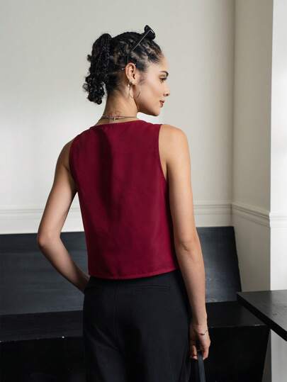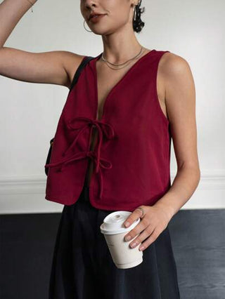 INAWLY ملابس علوية بلا أكمام أحادي اللون مع ربطة أمامية من الدانتيل للنساء