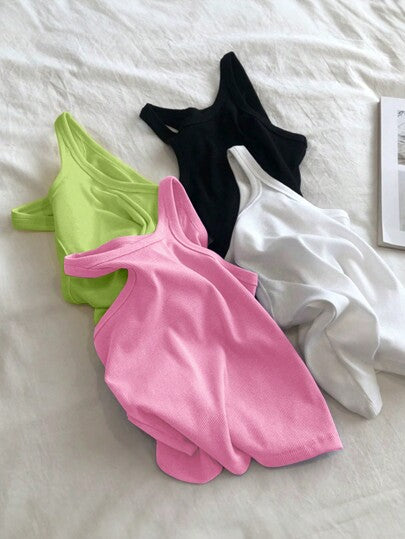 INAWLY ملابس علوية نسائية صيفية بتصميم الجيوب الملونة، ياقة دائرية بلا أكمام، ملابس علوية بسيطة عادية