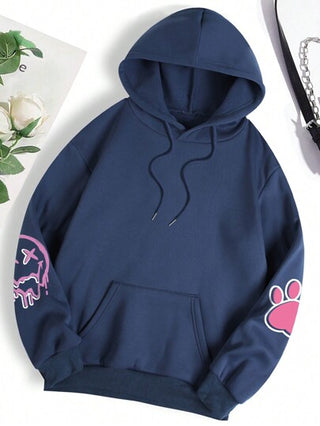 INAWLY هودي حراري صور رسوم كارتون جيب الكنغر رباط