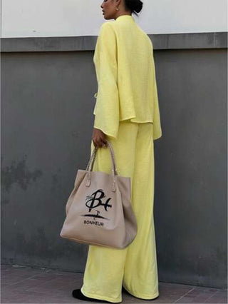 INAWLY مجموعة ملابس علوية وبنطلون عريض الساق بأكمام متساقطة فضفاضة كاجوال للنساء ، ربيع وخريف 2 قطعة