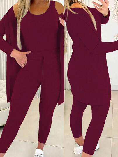 INAWLY 3 قطع طقم كاجوال للنساء، جاكيت أكمام طويلة ذات لون واحد، صدرية رقبة مستديرة وسراويل ضيقة
