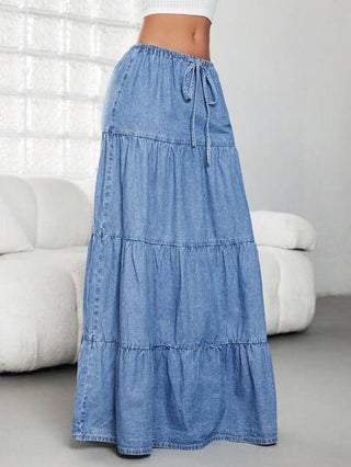 Jeanoix تنورة جينز عالية الخصر، تنورة كاجوال ماكسي جديدة لفصل الصيف بخصر مطاطي إيلاسيت مطرز بكسرات على شكل كيك