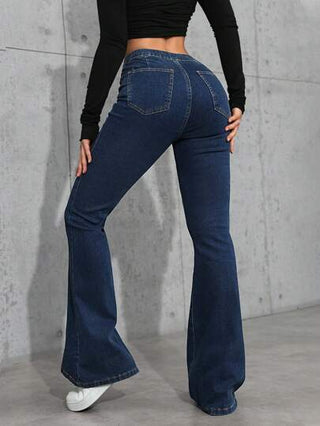 Jeanoix جينز بقصة مستقيمة وأرجل ممتلئة مغسول بشكل عرضي قطعة واحدة