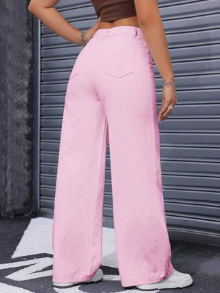 Jeanoix سراويل جينز مستقيمة فضفاضة كاجوال مع جيوب وأزرار أمامية للنساء