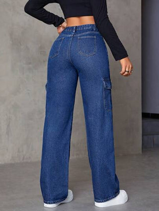 Jeanoix جينز نسائي بقصة مستقيمة وجيوب حمولة
