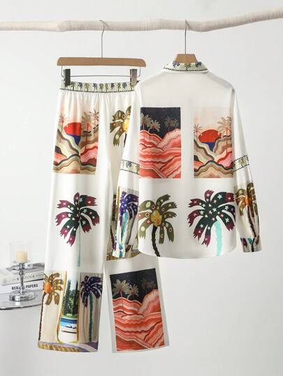 JORESS مجموعة قميص وبنطلون كاجوال من قطعتين للنساء بأزرار أمامية، صيفي