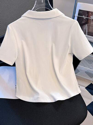 Jouncy تيشيرت نسائي أكمام قصيرة صيفي برقبة على شكل V بتصميم بسيط