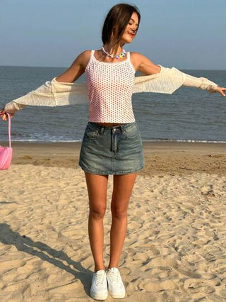 Jouncy ملابس علوية كاميسول بدون أكمام مع تريم دانتيل بطباعة قلب للنساء