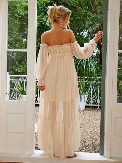 Joyfunear فستان نسائي للحوامل باللون الأحادي مع شق إلى الفخذ وهامش مكسر، فستان صيفي أنيق للأمومة بأكمام طويلة، للحفلات