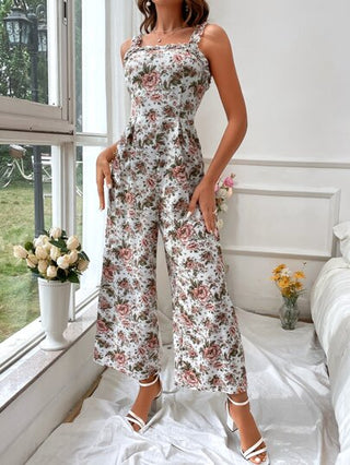 KARISMINA جمبسوت كامي واسع الساق طباعة الأزهار مقلم بكشكش