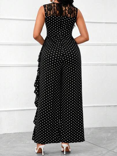 Lady التفتا ذو الساقين الواسعين وقطعة دانتيل مزخرفة بنقش البازلاء مع حواف مكشكشة، مناسب للمعلمات