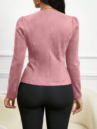 Lady جاكيت أمامي مفتوح بتفاصيل أزرار من الجلد المدبوغ لجميع الفصول