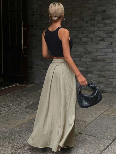 Livesso تنورة أنيقة كاجوال متوسطة الطول بتصميم خط A منتفخ ، تنورة صيفية أنيقة للنساء