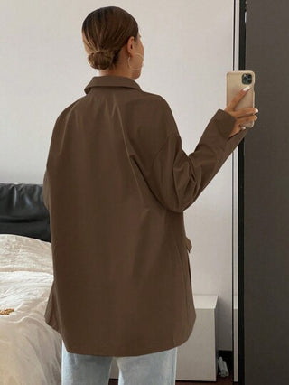 Livesso جاكيت نسائية عادية متناسقة الألوان واسعة، ذات أكمام طويلة وياقة ولها جيب