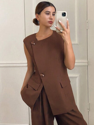 Livesso 2 قطعة من المجموعة الأنيقة للنساء في الصيف- توب أكمام بدون أكمام والبناطيل ذات الساقين الواسعة