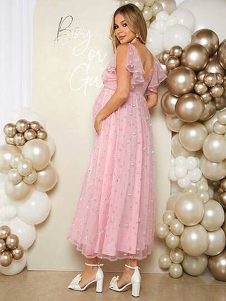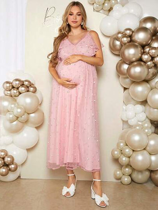 Loomaby فستان الكشف عن النوع للفتيات الشابات ، كاجوال ، أنيق ، رومنسي ، محايد الجنس ، حفل مفتوح ، حمالات رفيعة ، تطريز شبكي ، فستان حمل طويل مناسب للحمل ، فستان استحمام الطفل