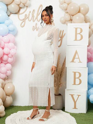 Loomaby فستان حمل من قماش الدانتيل ذو لون أحادي بأكمام طويلة وقصّة ضيقة أنيقة