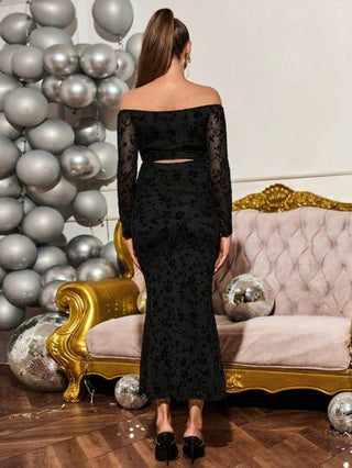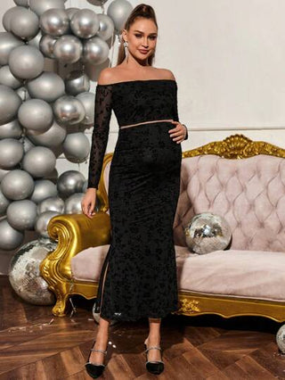 Loomaby مجموعة قميص أكتاف مكشوف للحمل وتنورة قلم أنيقة، قطعتان
