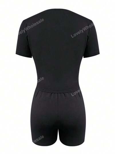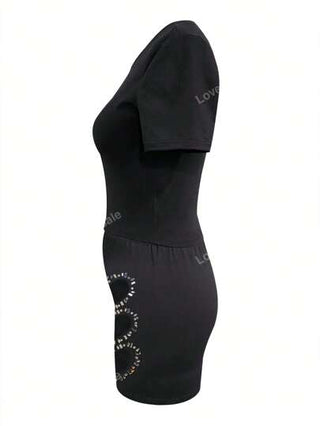 LovelyWholesale مجموعة من 2قطعة، تي شيرت وشورت نسائي مزين بالراينستون على شكل قلب، أكمام قصيرة