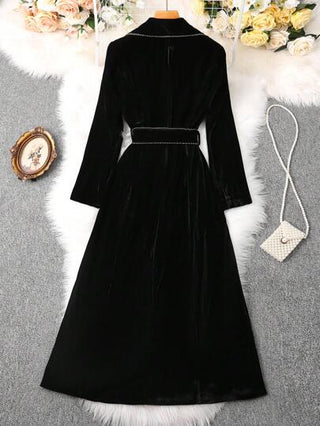 LUNE البدلة الطويلة من القطيفة بتشطيب ذهبي