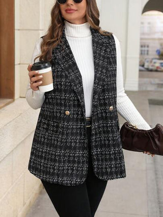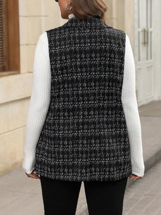 LUNE بلايز نسائية كبيرة الحجم بياقة على شكل قصوة، بدون أكمام، مصنوعة من التويد بتصميم بسيط، جاكيت واقية مناسبة للخريف والشتاء، ملابس عمل وأعمال رسمية، بلايز ملائمة لحفلات عيد الميلاد ورأس السنة الجديدة، طقم أنيق وساطع مناسب للعطلات