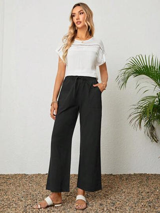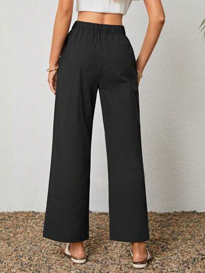 LUNE بنطلون بساق واسع موحدة اللون معقود من الأمام