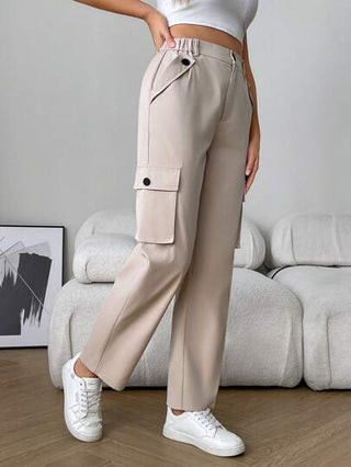 LUNE بنطلون كارجو كاكي للنساء، فضفاض وكاجوال بطراز أمريكي بتصميم جديد لعام 2024، بخامة مستقيمة الساق وبجيوب متعددة