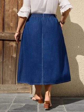 LUNE تنورة جينز بجيب أمامي وأزرار بحجم كبير، قصيرة وبسيطة للارتداء اليومي العادي