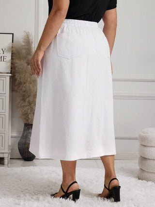 LUNE تنورة جينز قصيرة كاجوال للنساء قياسات كبيرة مع جيوب ربطة الخصر، أبيض في الأمام