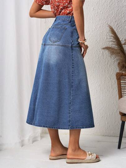 LUNE تنورة جينز نسائية بأزرار أمامية وجيوب