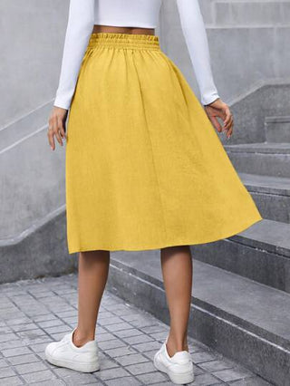 LUNE تنورة نسائية واسعة متوسطة الطول بتأثير الجينز الأزرق، فضفاضة، للخريف