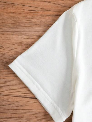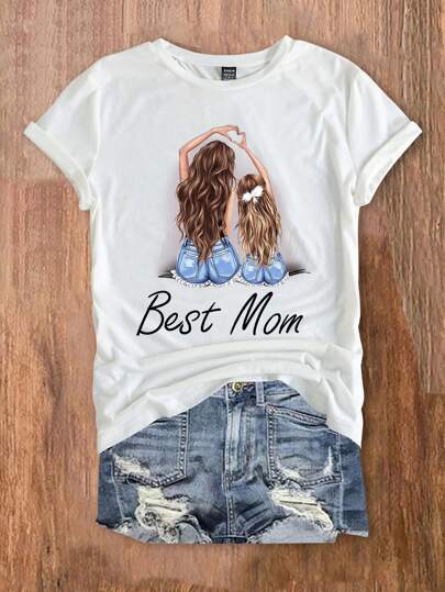 LUNE تي شيرت بياقة طاقم مطبوع عليه حرف مناسب ل- الأم والبنت، اطوال الأكمام قصيرة، مناسب للصيف