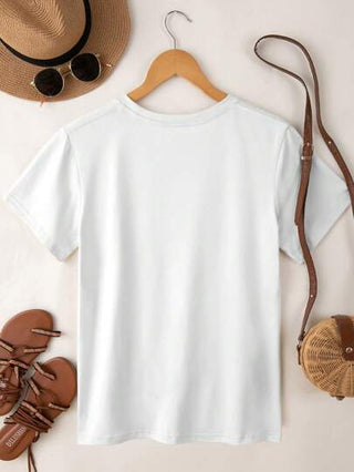 LUNE تي شيرت صيفي كاجوال قصير الأكمام للنساء، مطبوع بطبعة وجه الحد الأدنى
