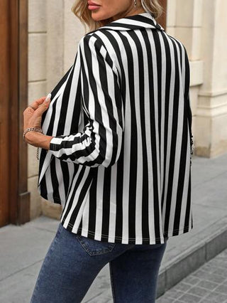 LUNE جاكيت بيضاء وسوداء مخططة للنساء بأكمام منتفخة، مناسبة للتنقل والارتداء اليومي